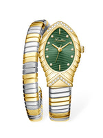 Gloria Divina este o piesă statement dedicată femeii care îmbină rafinamentul cu puterea. Designul său inspirat din formele fluide ale bijuteriilor clasice este completat de accente strălucitoare și o brățară tip snake ce îmbrățișează elegant încheietura.