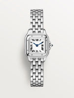 Detalii: Cadran alb cu cifre romane negre, coroană decorativă cu piatră albastră