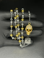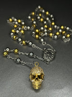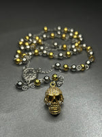 - Κολιέ με σχέδιο εμπνευσμένο από το κρανίο, διαθέσιμο σε χρυσό τόνο.
