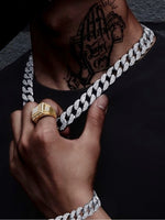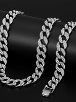 Κουβανική αλυσίδα από κράμα μετάλλου ασήμι και ένθετα ζιρκονίου.