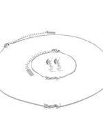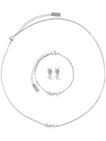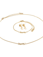 În acest set primești cercei, colier și o brățară la alegere – fie modelul fix pe negru, fie cel reglabil auriu.