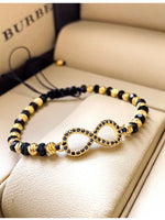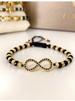 Bratara onix fatetat pe globuri si inox aurit, model infinit